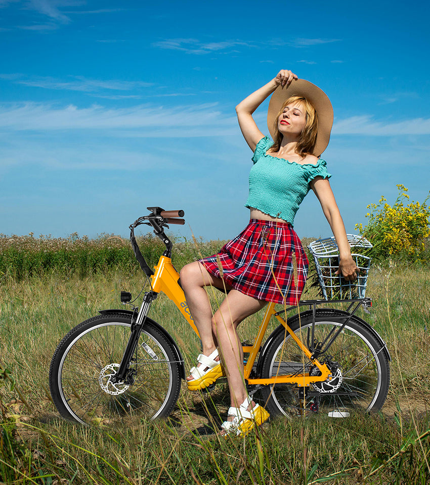The Actbest Cores Step-Through ebike comes puncture-resistant tires that are made with tougher compounds and are great for rough surfaces, such as uneven asphalt or light gravel trails.