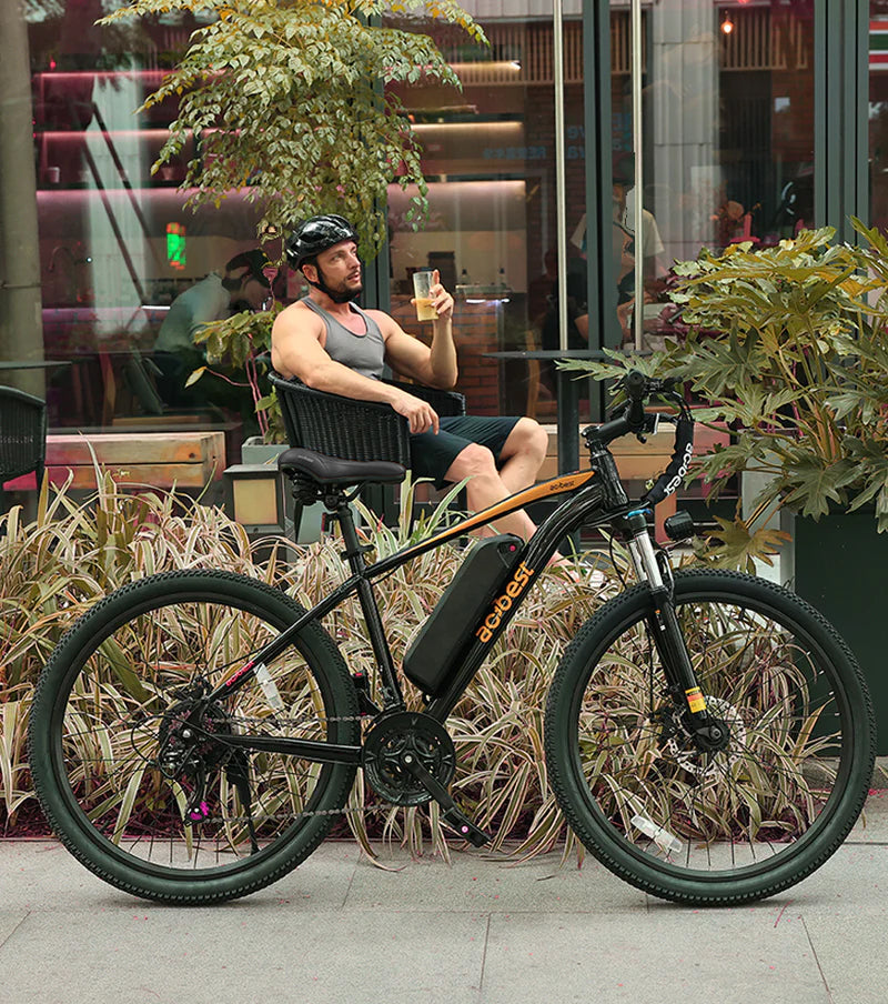 The bike has a top speed of 28 mph, providing ample speed for commuting or exploring off-road trails.