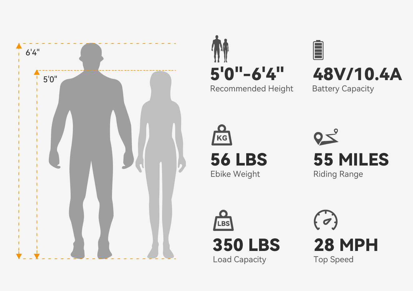 Built-in EVS-Quality Battery - The UL-certificated 48V 10.4AH battery is easy to remove for charging and has a waterproof, shockproof design,which is safer and more last longer. The battery could give you a range of up to 55 miles on a single charge.