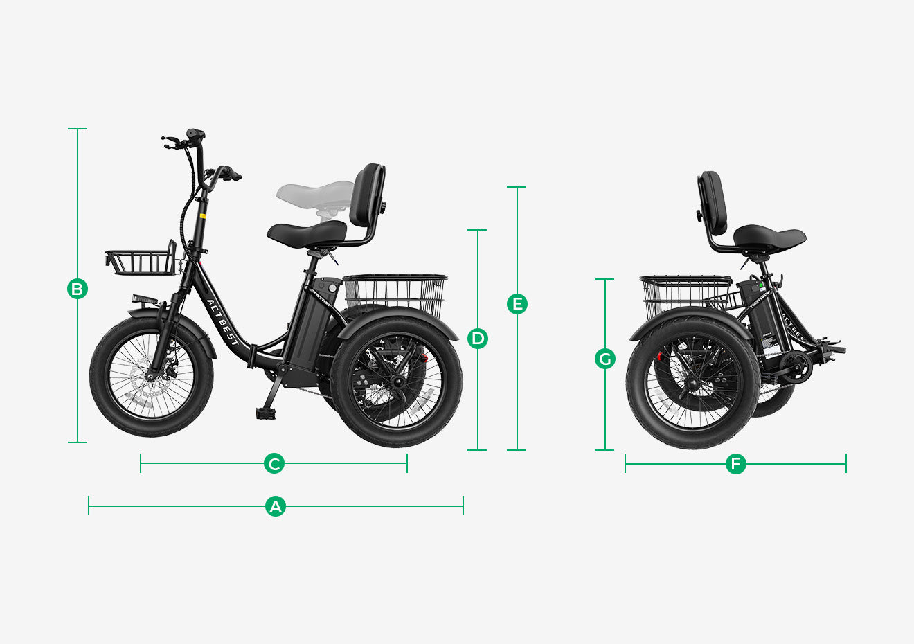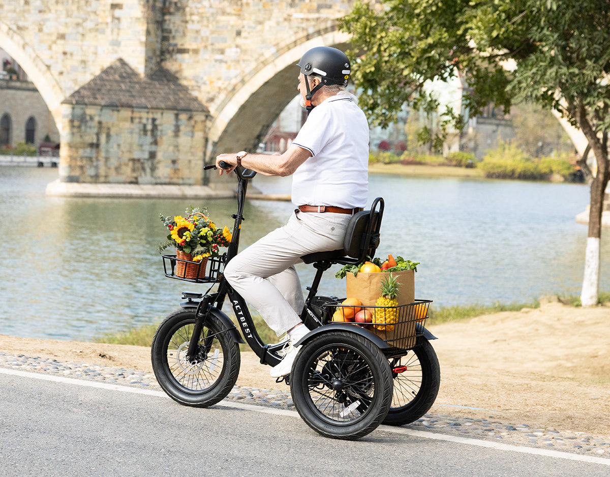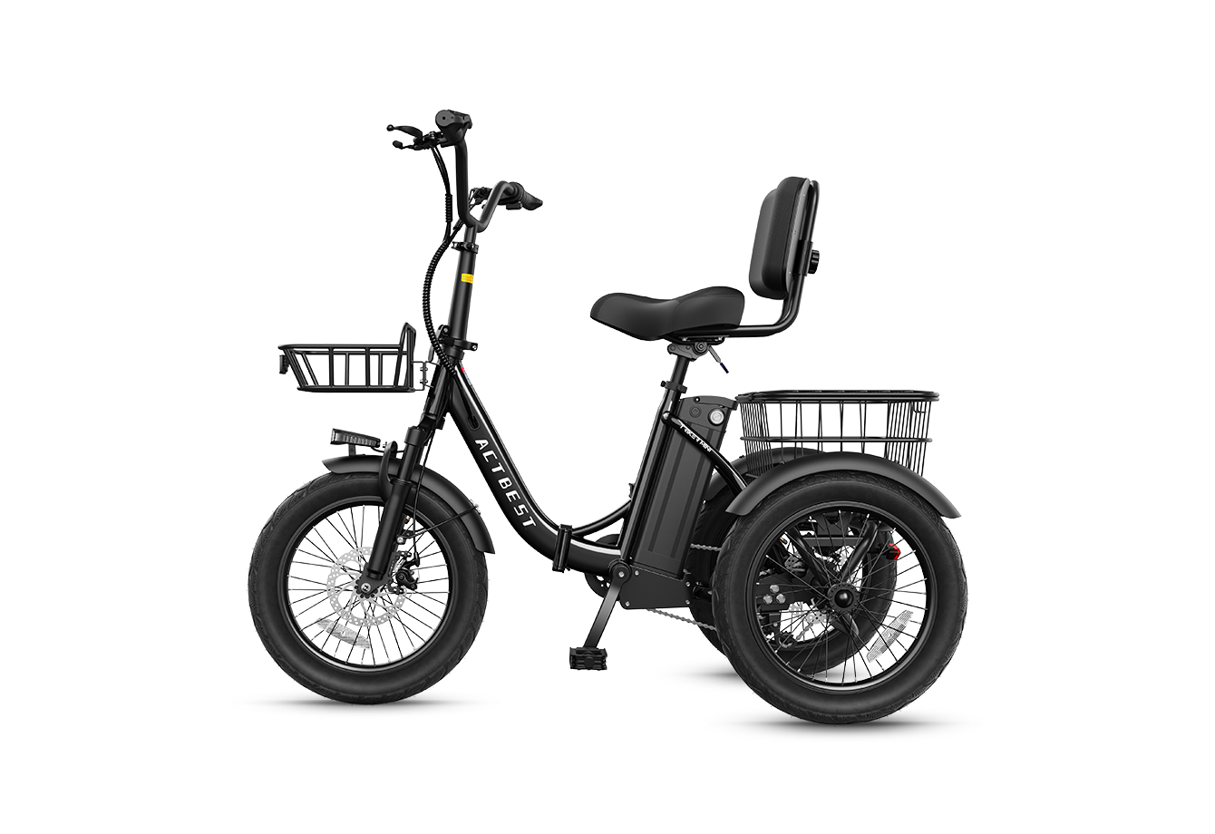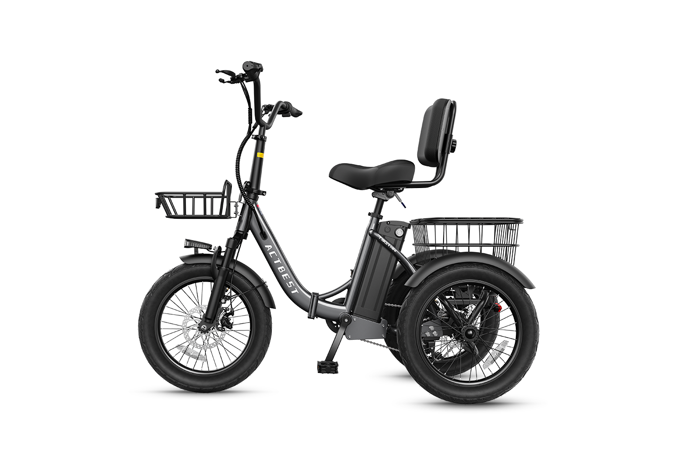 Highest quality rear differential for independent wheel action, keeping the tricycle balanced through turns. Triker combines this with 18x3.0" extra-wide tires and a low center of gravity for superior grip. Thoroughly tested with full loads and steep slopes—ride confidently, every time. Choosing Actbest means choosing the highest safety standard.